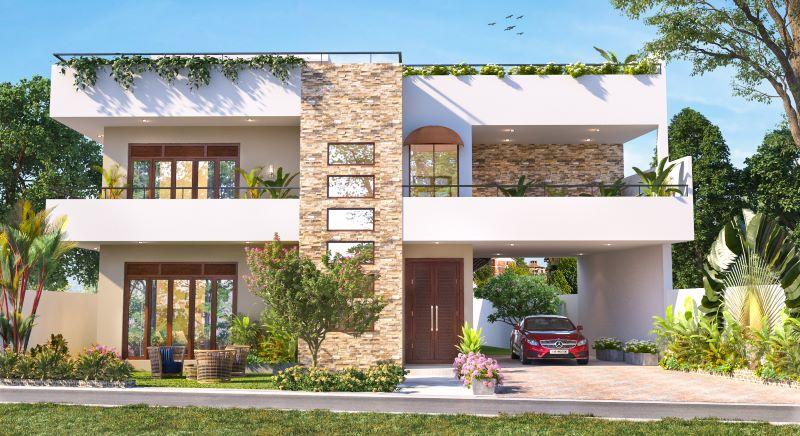 A single storey house. This house facing east direction is a 4 bedroom house. The kitchen is in the west direction. The car porch is also Client : Mr.Rajitha...
